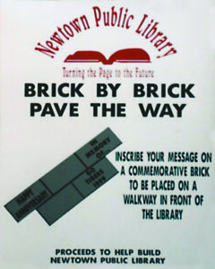 leadership, moving in 1976 to a basement space in the Mullray building in the Newtown Square Shopping Center. By 2000 they were out of space, and so began planning the next move. Newtown residents raised nearly $1 million in donations, and a $400,000 state grant was obtained to build a dedicated library building on Bishop Hollow Rd. that opened in March 2003.
