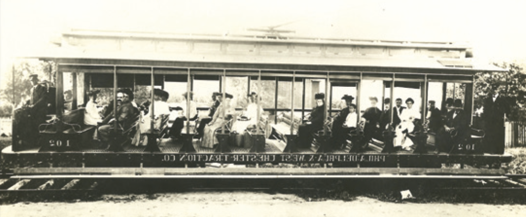 The rock formation was an early tourist destination, so much so that the Philadelphia and West Chester Traction Company built a trolley line from 63rd Street out to an amusement park that they created at Castle Rock. A 1902 news article described what was there: “The cave and the rocks which were the hiding places and fortifications of Fitzpatrick during the long period of his depredations in the Revolutionary War have been made easy of access by shaded walks and are visited by thousands of curious persons. Fishing, dancing, merry go-rounds, shuffle boards and other games are delighting visitors. The Park has a fine restaurant. It is an enjoyable ride on the Philadelphia and West Chester trolley line to Castle Rock.”