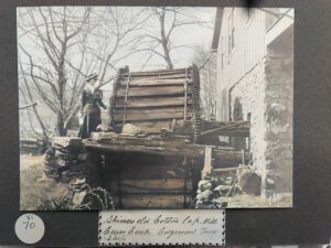 Thomas Johnson is the first mentioned miller in the area in 1799, operating a saw mill. By 1812, George Entriken [Antrican] was operating a distillery and a paper, saw and grist mill. Around 1825, Jonathan Noble Hatch bought the property, installed “ten carding-machines, three hundred and sixty throstle-spindles, seven hundred and eighty mule-spindles,” and began manufacturing cotton thread. Like so many wooden factories of the day, the mill suffered a fire that put Hatch out of business in 1838. An 1840 ad for the property touted a 2-story mansion house, five stone and four frame houses for workers, “the walls of a large stone mill which has been used (until burnt) for a cotton factory,” and a host of other buildings, all on 100 acres.