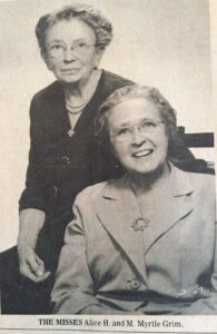 The sisters lived together in a house on West Chester Pike. Myrtle died in 1973, at age 77. Alice died in 1985, at age 97. Their home was demolished several years ago. In its place, the Goddard School has built a beautiful new school building and has installed a historical marker honoring the memory and the contributions to the community made by Alice and Myrtle Grim, a fitting tribute to the Sisters Grim.