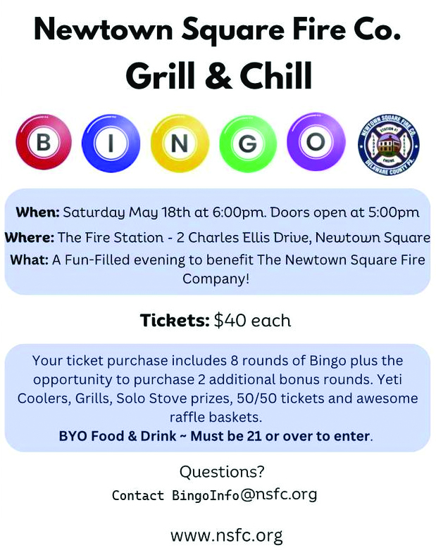 Grill and Chill Bingo to Benefit the Newtown Square Fire Company