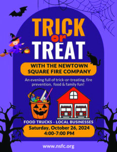 The event will be held at the firehouse, 2 Charles Ellis Drive, in Newtown Square, from 4 to 7pm. Trick-or-treating and fire prevention demonstrations are free to attend, and everyone is welcome! There will also be a quiet sensory area for children that will offer non-candy goodies.