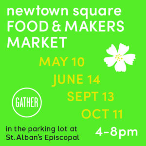 It’s also home to the all-new Newtown Square Food and Makers Market, which will take place once a month in May, June, September and October. You may recall that over the past three years, the Farmers Market was a weekly event where local vendors and community members gathered in the St. Alban’s Episcopal Church parking lot to sell goods, enjoy entertainment and promote community involvement.