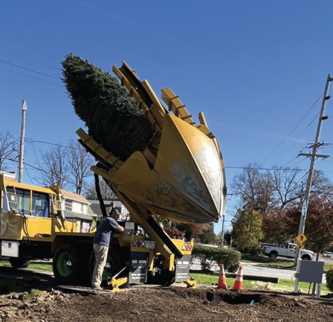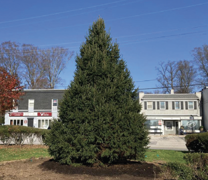 Last month, the Newtown Township Board of Supervisors authorized the purchase of our new 20′ Norway Spruce, and our Public Works crew quickly got to work preparing the site and installing a new electrical box and wires.