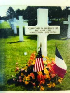 Doug told Sue that the Marple Newtown area contributed 201 young men who served in the Armed Forces during WWII; of those, six did not return home. Of those six brave soldiers, Clifford Douglas Murray, Jr. was the only one who died during the Normandy Invasion. “I was able to look up where Clifford was buried, locate his plot and place flowers at his cross,” Sue said. “It was a very moving and memorable experience to honor his