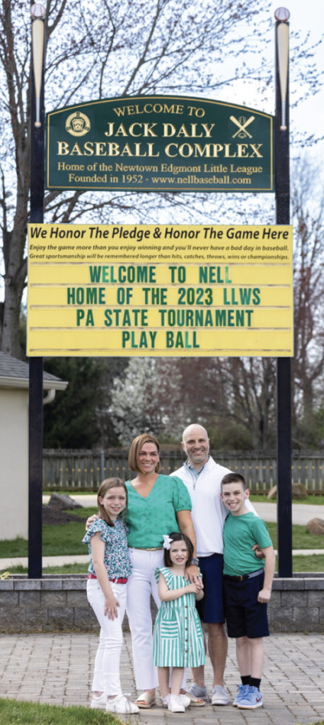 The happy couple exchanged vows in June 2006 at Our Mother of Good Counsel in Bryn Mawr, with a honeymoon to follow in Aruba. The newlyweds then bought Mike’s grandparent’s house in Drexel Hill, where they lived for a few years before moving to Havertown. Their goal, though, was to move to Newtown Square to raise a family eventually. “My grandparents lived in Newtown Square, and I always remembered having such a great time when I visited them,” Mike said. “Being a kid who loved sports, I was also in awe of the Newtown Edgmont Little League (NELL) complex.”