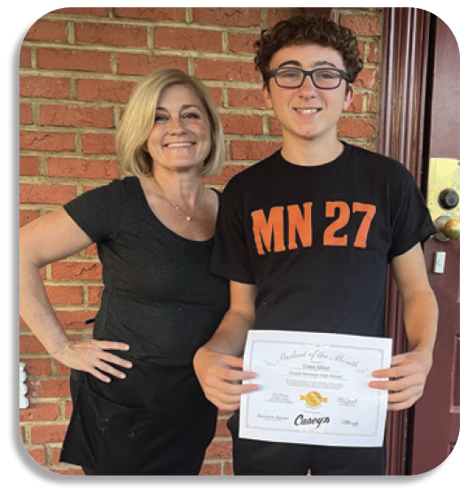 The September Casey’s Public House Student of the Month is Caleb Miller, who is a Freshman at Marple Newtown High School (MNHS). Caleb received a Certificate of Achievement and a $25 gift card from Casey’s Public House, our Sponsor of this program.