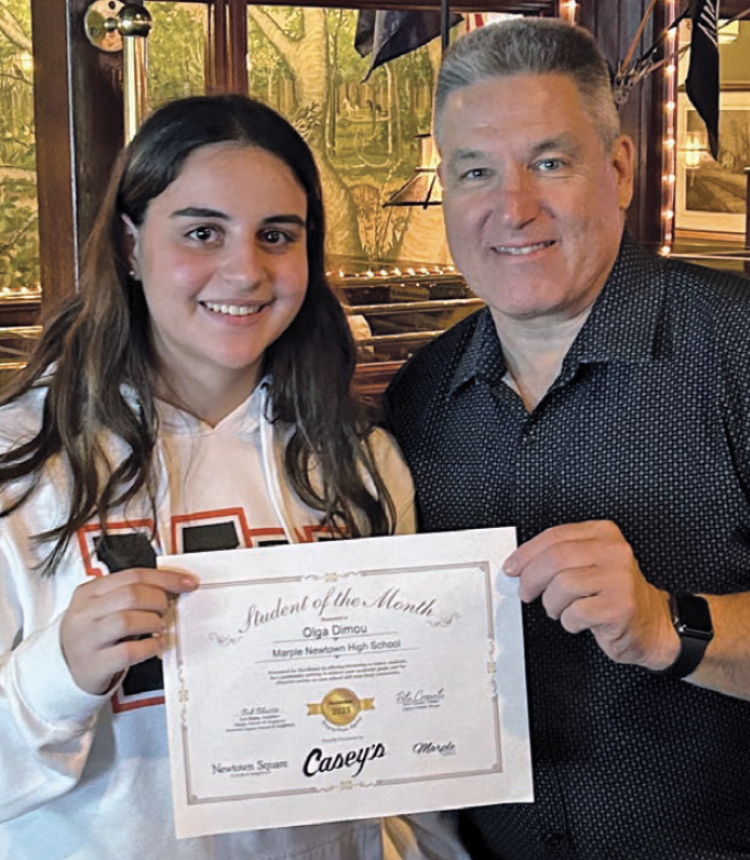 The November Casey’s Public House Student of the Month is Olga Dimou, who is a Senior at Marple Newtown High School (MNHS). She also received a Certificate of Achievement and a $25 gift card from Casey’s Public House, our Sponsor of this program.